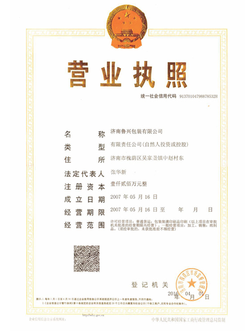 濟南魯興包裝有限公司為瓦楞紙箱加工企業。公司坐落于濟南市槐蔭區濟齊路中段,占地50畝,建筑面積2萬多平方米,注冊資金1200萬元,是濟南市先進的瓦楞紙箱生產廠家。