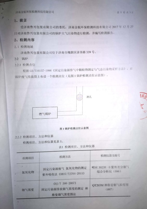2018年1月環(huán)保檢測(cè)報(bào)告